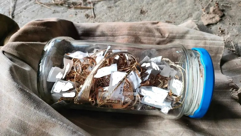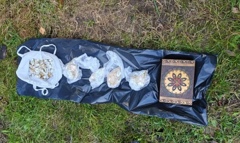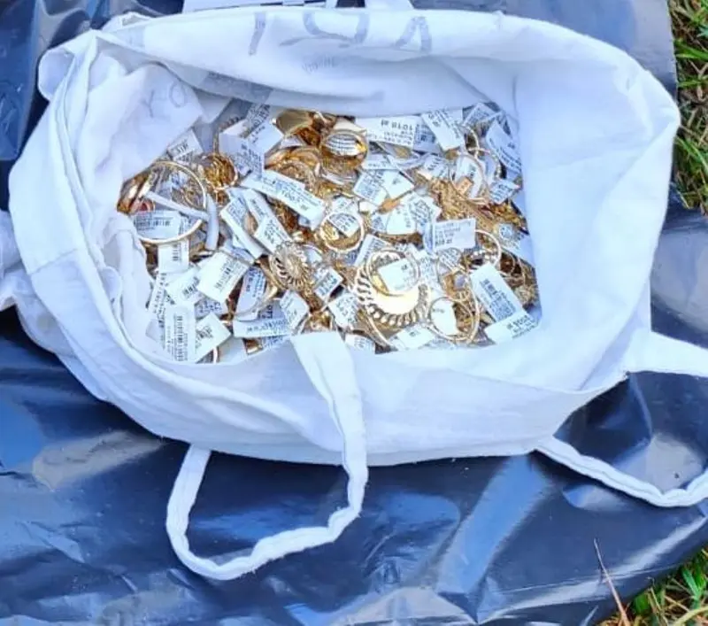Zapakowane do reklamówek złote łańcuszki, pierścionki i bransoletki policjanci odkryli w mieszkaniu Mateusza B. Część była zakopana w przydomowym ogródku. Inna ukryta w pomieszczeniu gospodarczym.