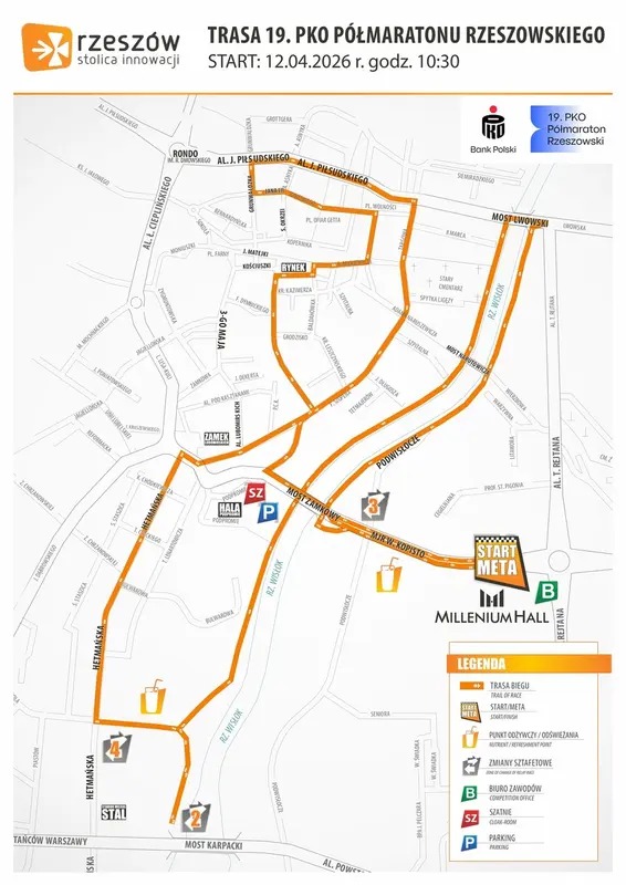 19. PKO Półmaraton Rzeszowski odbędzie się w najbliższą niedzielę, 12 kwietnia. Weźmie w nim udział 2,5 tys. osób. Półmaraton rzeszowski rozpocznie się o godz. 10.30. Start przy Centrum Millenium Hall.