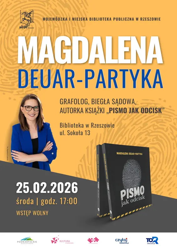 Spotkanie z Magdaleną Deuar-Partyką odbędzie się w siedzibie WiMBP przy ul. Sokoła 13. Spotkanie rozpocznie się o godz. 17.
