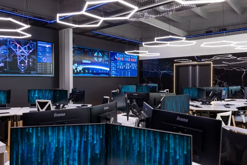 Infrastruktura wizualna rodem z centrum misji kosmicznych.